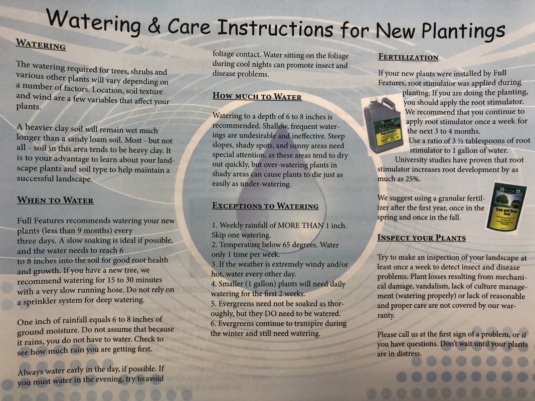 It is important to keep in mind that over-watering new trees and shrubs can kill them almost as quickly as a lack of water.